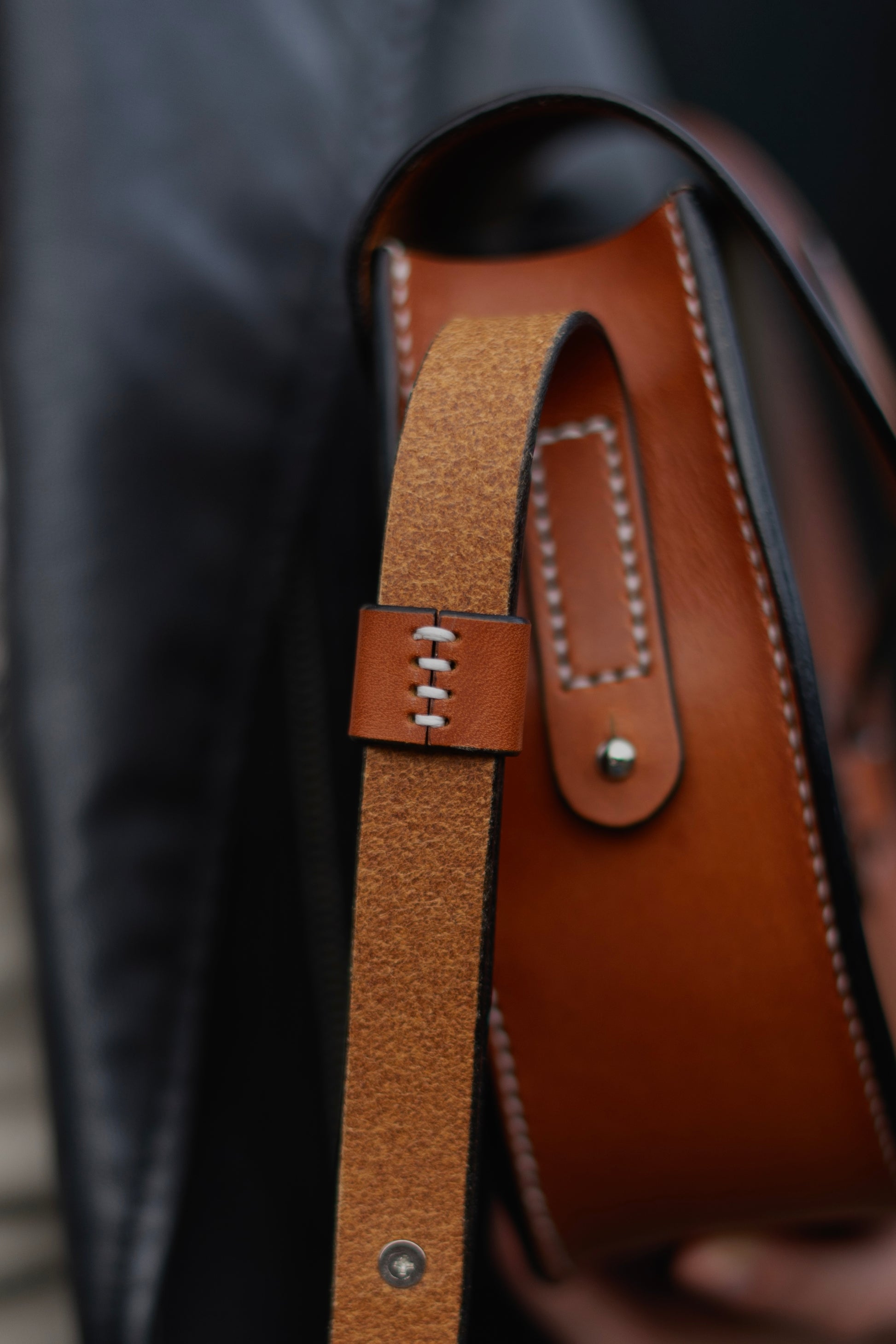 Inspired by classic saddle bag shapes, this bag features a clean, timeless silhouette with a structured form. The adjustable leather strap allows comfortable wear over the shoulder or across the body